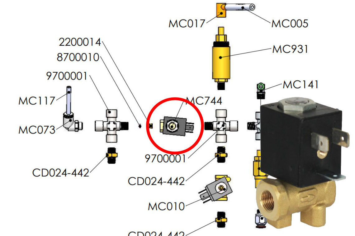 - 			Kein Wasser aus der Brühgruppe der Bezzera BZ07?Ein defektes Magnetventil ist die häufigste Ursache, wenn zum Beispiel aus der Brühgruppe der BZ07 plötzlich kein Wasser mehr kommt.